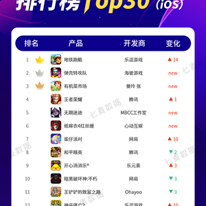 从厂商分布来看,腾讯遥遥领先,共有 8 款游戏上榜,网易有 4 款游戏上榜,Oayoo 和乐逗游戏皆有 2 款上榜。虽四大厂商在 8 月均无爆款新游,但网易前段时间上线的「蛋仔派对」和乐逗游戏老牌游戏「地铁跑酷」「神庙逃亡」在暑期档下半场发力明显,排名均上升了 10 余位。