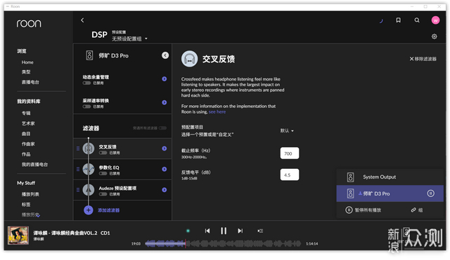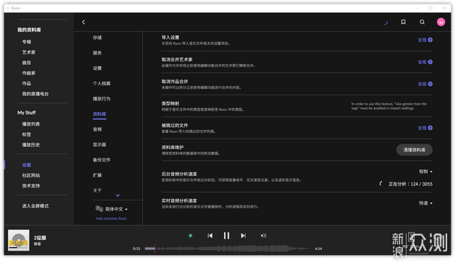 roon 在扫描完音频文件后会自动将低音质音频采样率提升至 44.1kHz(准CD格式),同时会与服务器进行对比,补充曲目相关资料并生成响应的资料库。