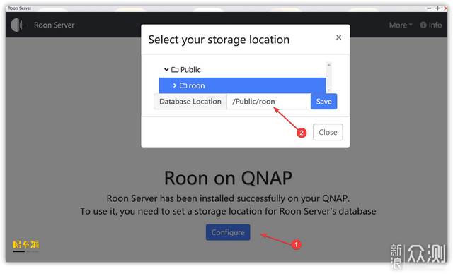 ▼运行 Roon Server ,点击 Configure 选择之前创建的 roon 文件夹