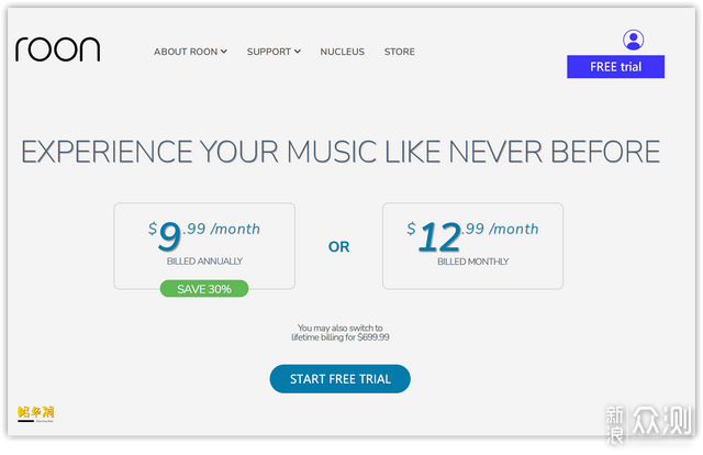 roon 不是免费软件,包年价格 118.8 美刀(折合单月价格 9.9) 、单月付费价格为 12.99 美刀、一次性买断则是 699.99 美刀。我们可以先点右上方的试用链接体验 14 天。