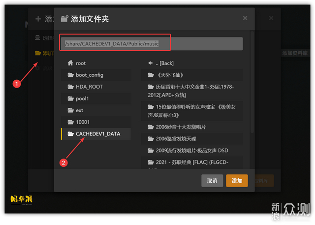 ▼添加文件夹,也就是 NAS 上储存音乐文件夹