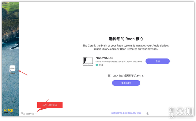 ▼这里我用 Windows PC 版展示。启动下载好的 roon 软件,可以看到已经识别到了我创建的媒体服务器,连接即可。