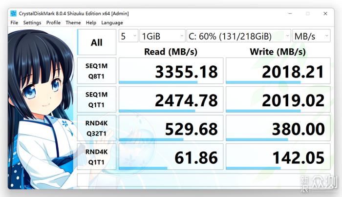 LG Ultra笔记本标配硬盘为512G的PCIe 3.0,在Crystal Disk Mark中测试的读写速度分别为3355.18MB/s和2018.21MB/s,这样的成绩还是比较优秀的,2秒开机就是一种体现。