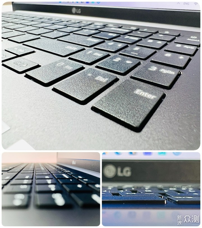 用过LG gram的同学都知道它的键盘有多好用,相比轻薄本里键程和回弹触感最好的ThinkPad X1,LG Ultra笔记本按键的键程丝毫不逊色,只不过软弹韧劲的触感,跟X1清脆利索的调校是有区别的。