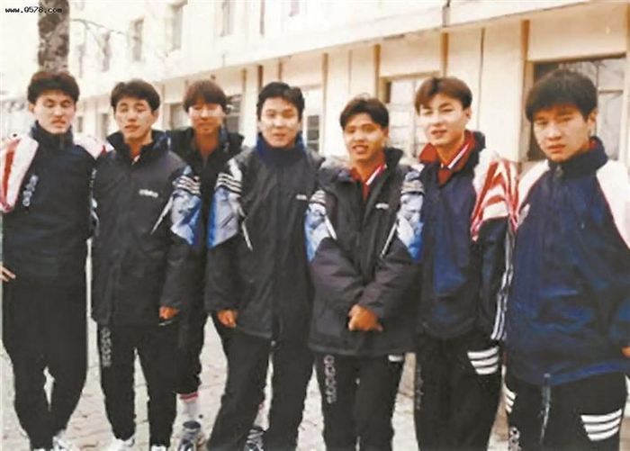 1997年,健力宝“六小天鹅”被调入国家队。左四为健力宝青年队助理教练李辉。
