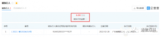 小编注意到,徐卫东离开后不久,中国铁塔揭阳分公司就于2022年2月末被广东省揭阳市榕城区人民法院列为了“被执行人”,执行标的6万元整,案号为(2022)粤5202执514号。
