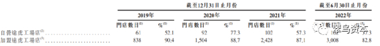加盟途虎工场店已分别于2019年、2020年、2021年12月及2022年6月当月向公司支付基于利润的分成费比例依次为:90.4%、88.7%、87.1%、82.8%。