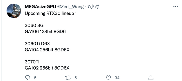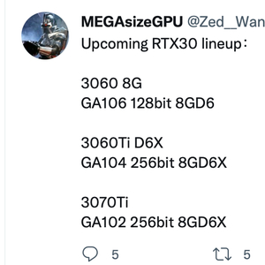 到目前为止,尚未确认配备 GA102 GPU 的 RTX 3070 Ti,此类型号通常是特定地区的,不会在全球销售。