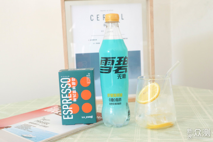 所需材料:无糖柠檬薄荷味雪碧、适量柠檬、冷萃咖啡、冰块