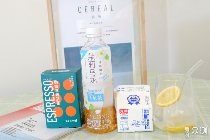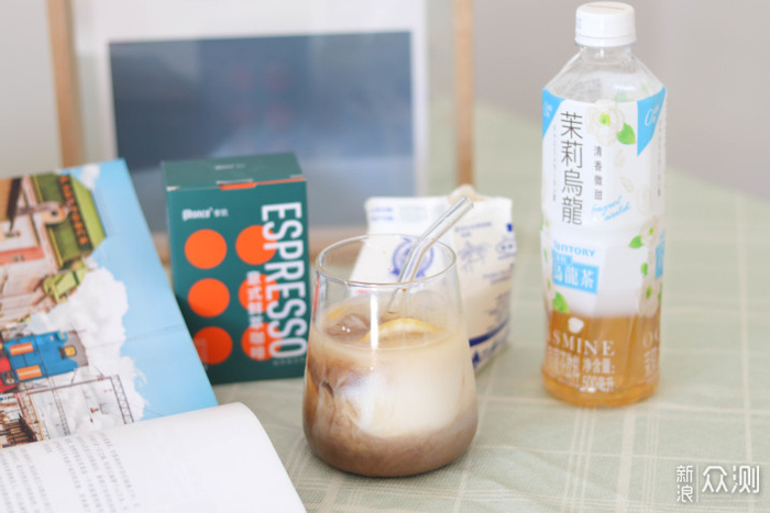所需材料:三得利茉莉乌龙茶、光明新鲜牧场牛乳、冷萃咖啡、冰块