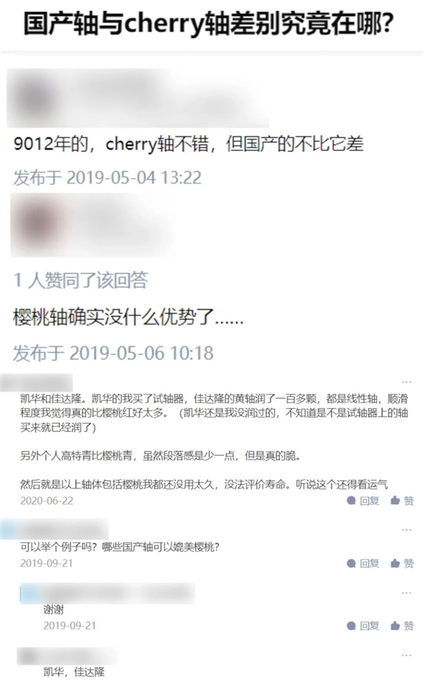 甚至有猛人提出,国产轴是否能够取代Cherry轴?