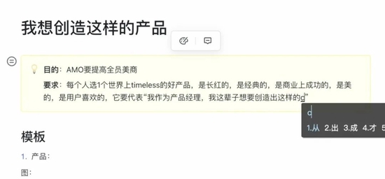 而现在,李绯悦每周五都会组织组员用飞书文档开“新品采摘会”,和组员们一边喝着产品,一边探讨大家在文档中写的产品idea。在飞书文档上,李绯悦和组员们收集共创了元气森林的元气未来。