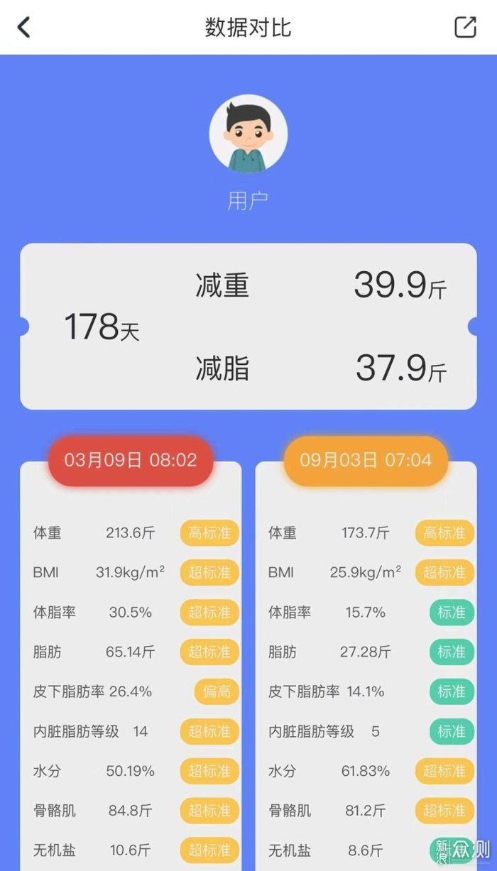 体重降低39.9,体脂率下降15%,皮下脂肪率下降12%,脂肪肝都没有了,都是在我身上直观的体现。