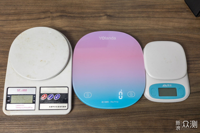 比如我就准备了三个厨房秤,一个在厨房里用,主要称重生食材,比如生的肉类、五谷杂粮等等。