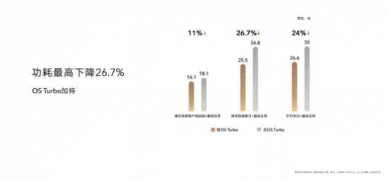 OS Turbo是荣耀从消费者痛点需求出发,带来续航和性能兼顾的最 佳解决方案。在OS Turbo加持下,荣耀MagicBook V 14 2022 在钉钉会议、腾讯视频客户端追剧以及微信视频聊天等日常场景下,功耗最高下降达26.7%。