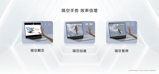 荣耀MagicBook V 14 2022是全球首款同时拥有TOF传感器和500万高清摄像头的轻薄本,通过对手势的精确识别,可实现隔空手势操作。通过左右挥动的手势可在Word、PPT、PDF、WPS办公应用场景下,不依赖鼠标或键盘即可实现翻页;通过按压手势可在播放视频时,实现视频暂停和继续,结合左右手势还能调节视频进度。