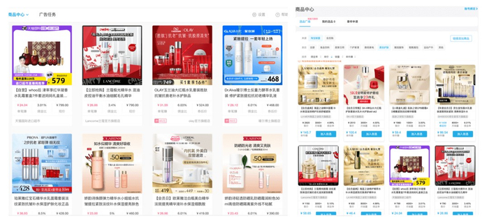 左为此前视频带货的货品池,右为新的直播带货货品池