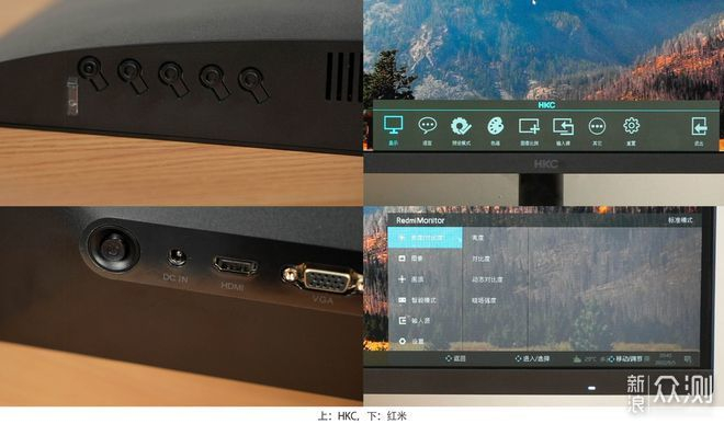 实体按键方面,红米为5向摇杆,HKC为5个实体按键。实际操作手感与体验方面,红米的菜单逻辑很好,但摇杆灵敏度一般。HKC的菜单逻辑合理,但观感一般,按键手感清脆,反应速度也比较快。