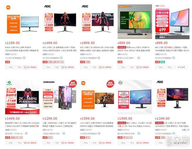 在做这次对比时我才发现,现在千元内已经能入手到不少2K分辨率的屏幕了,而且这两款屏幕也标称自己为高色域屏,这么高素质的屏幕售价这么低,可见现在显示器领域的内卷有多疯狂。