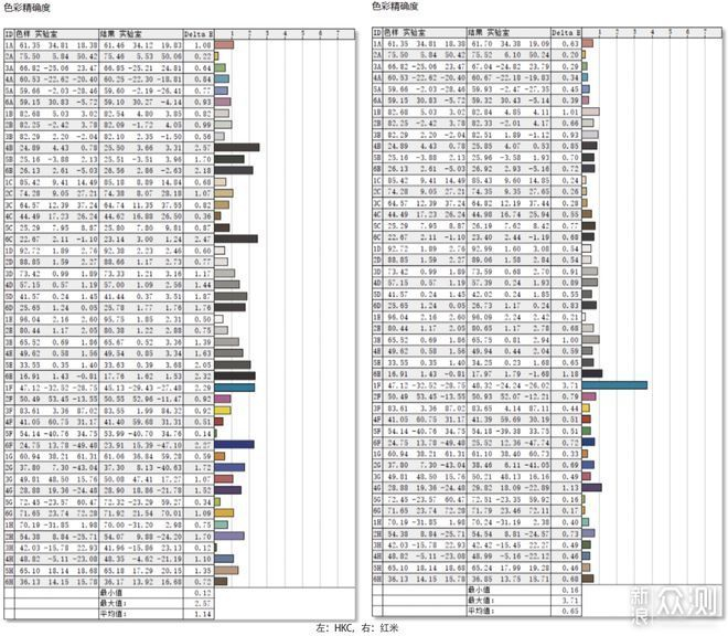 两款显示器的平均色差都控制在2以内,色准表现都算不错