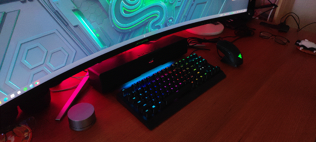 平时晚上工作或者码字的时候我喜欢播放一些舒缓的歌曲,一一边听歌一边码字,又或者是开启桌面的灯光模式。进入游戏模式,整个桌面灯光四射,精彩纷呈。果然男人都喜欢RGB。