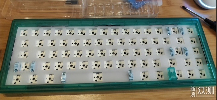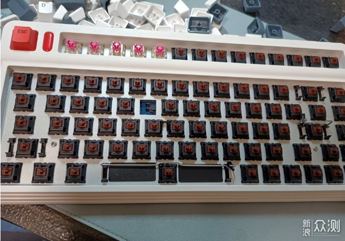 这里简单解释一下lightGasket,从我的拆解来看,它并不像真正的Gasket一样和外壳由软性材料连接,确实整个卡在底壳上,虽然中间也有几颗螺柱支撑,但是整体结构还是比较有新意的,算是有点类似Gasket,但是并没有增添太多装配成本。