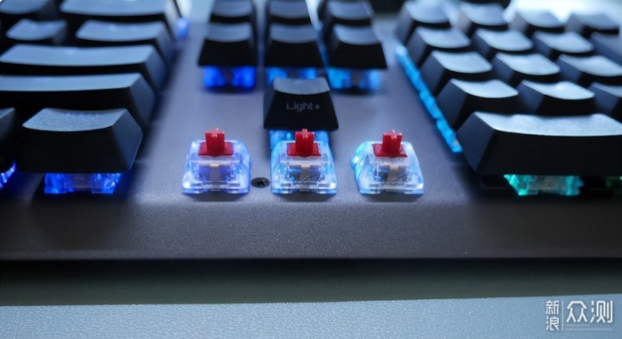 而且从外壳材质来看,这个价位的键盘外形普遍为公版设计,很多高价位键盘漂亮的线条设计基本无缘,侧面加上RGB灯条已经是相对奢侈的装饰了。
