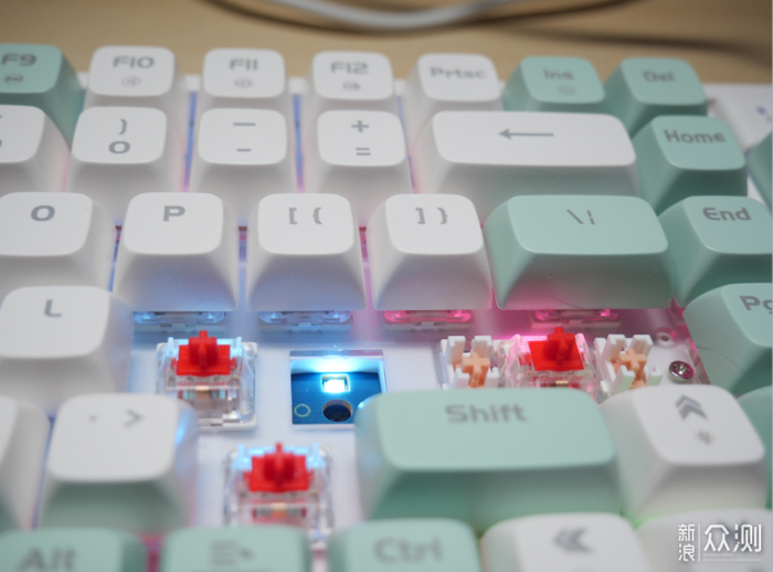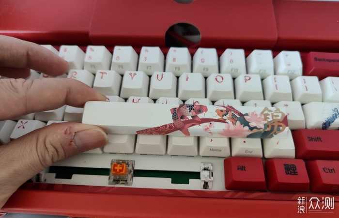 康腾特红轴在这个价位算是素质不错的,但是一致性还是差,个别轴体手感怪异,最好到手自润一下。键帽有纯色和抹茶绿、奶油骑士可选,ABS材质,但是比较厚,硬度也不错,手感在线。同时支持套筒热插拔,可惜原包装里没有附带拔轴器。