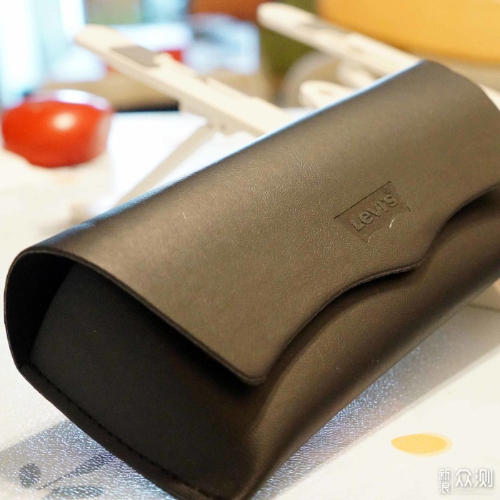 正面李维斯logo的仿皮材质镜盒,稍微软了点,有点担心防护力。