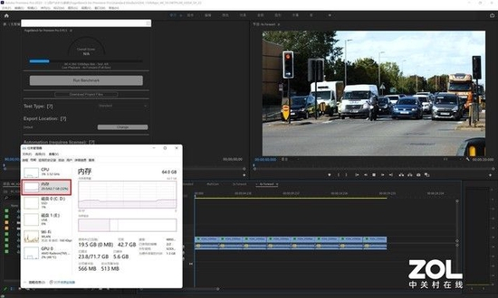 其次就是做图。在使用Photoshop处理图片时,很多滤镜特效加载或处理时,内存占用都会达到极为恐怖的状态。比如笔者通过一段脚本对图片进行“滤镜:自适应广角”操作时,可以看到内存占用率飙升到了33GB,占64GB内存的53%。如果使用16GB内存进行相同操作的话,系统就会自动压缩内存占用率,而其结果自然是“以时间换空间”,整个处理时间会成倍延长。