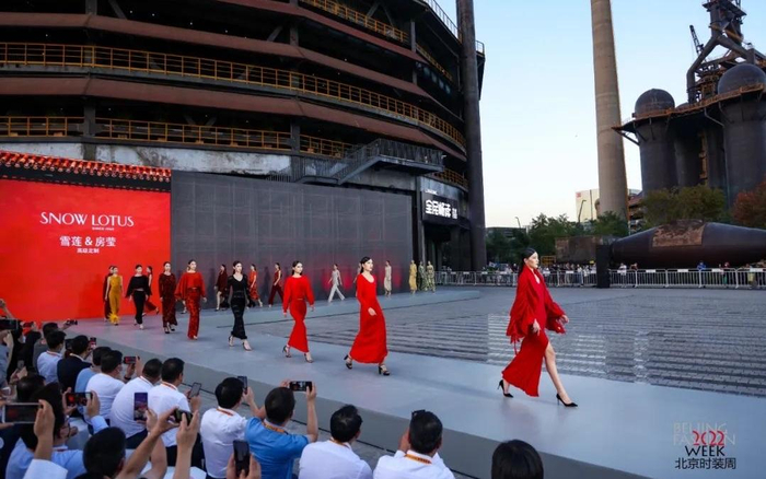 老字号品牌“雪莲”担纲了本届北京时装周及2022年中国国际服务贸易交易会的首秀。在雪莲·房莹高级定制大秀上,55套作品均以中国传统建筑纹样为灵感,巧妙提取古建筑门楣、斗拱、窗棂等经典结构中的如意、莲花、水波纹图案,进行延伸设计,将中国传统纹样与时尚服装结合,表达老字号品牌对中国传统文化的挖掘、继承和创新。