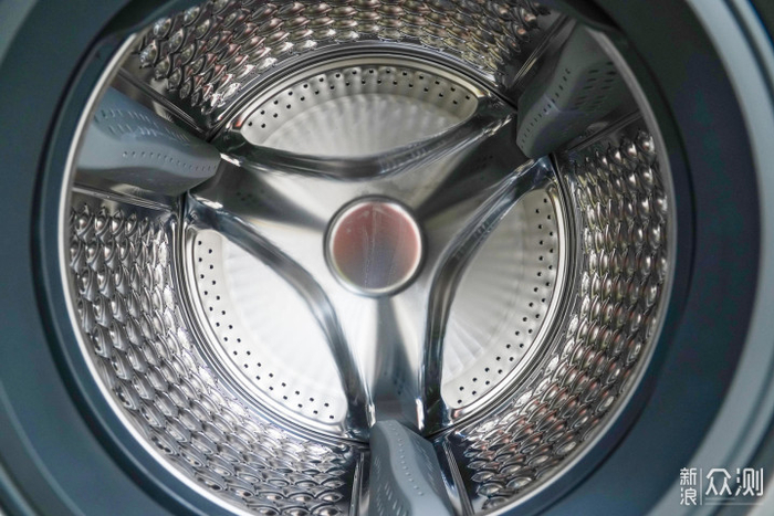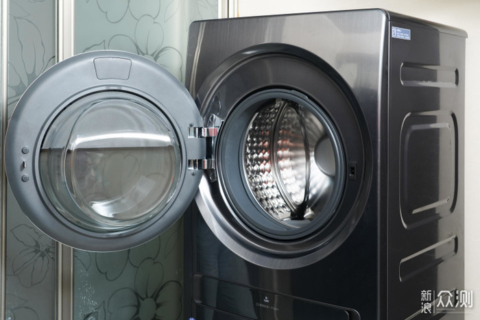 直观感受就是筒门好大。两个筒门都采用了钢化玻璃材质,用久了也不会像塑料材质一样被磨出划痕影响美观。而且都内置了照明灯,洗涤中也可以开启查看筒内的状况。
