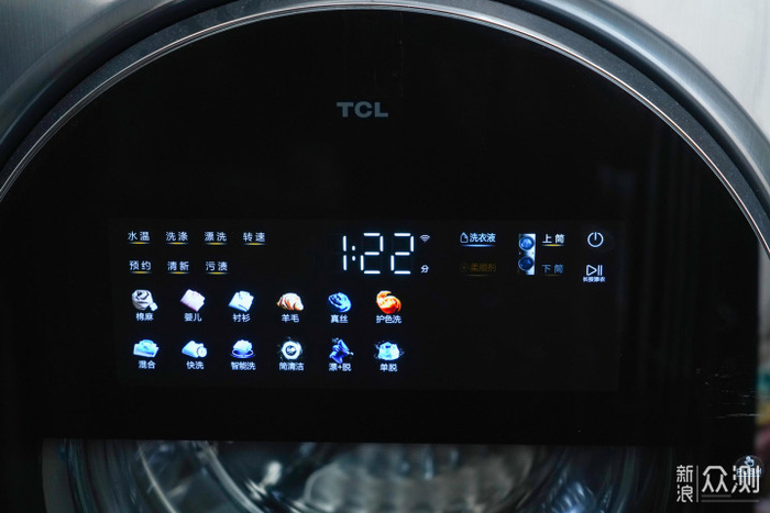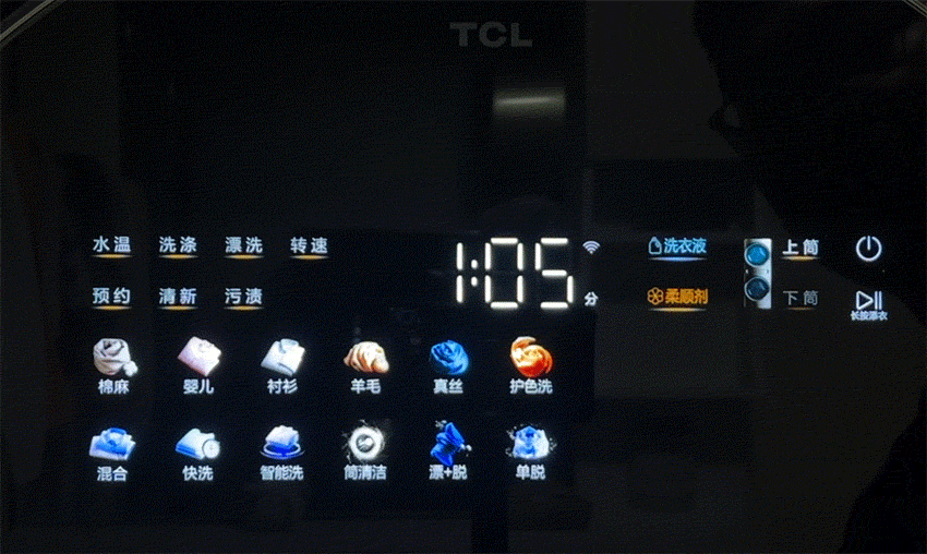 TCL Q10采用了相对炫酷的超宽触控彩屏设计,超大的控制区面板几乎覆盖了半个上筒门。
