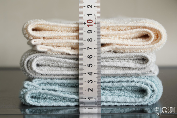再来看看洗好的毛巾。头一天我用手拧干并挂晒晾干的三条毛巾测得对折再对折后的高度为7.5厘米。使用这台TCL Q10烘干后,测得高度大约10厘米,明显的变蓬松了,毛巾擦到脸上时也很柔软。