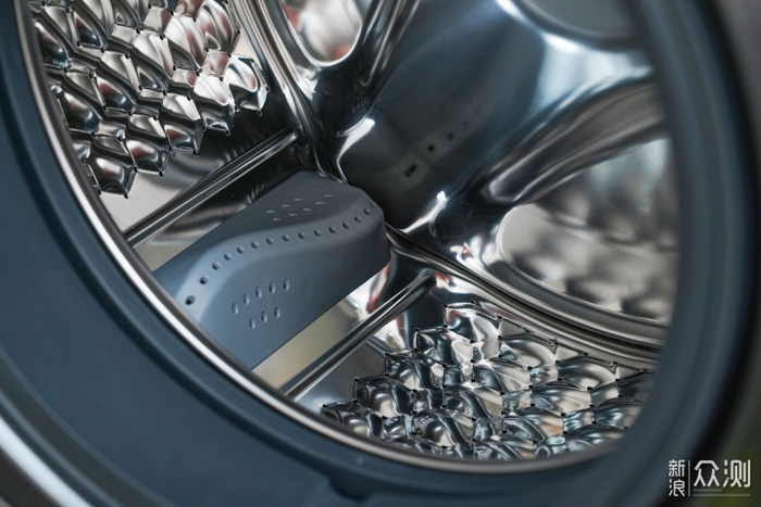 介绍完上筒和投放盒,再来看看下筒。下筒是10公斤的容量,能满足我们日常几乎所有的洗涤需求,无论是厚的床单被罩还是超大的窗帘,又或者是冬天的大外套、羽绒服,双子舱Q10的下筒都能轻松容纳。