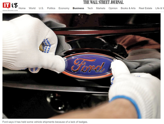 IT之家了解到,福特汽车的一位发言人证实,由于缺少徽章,公司已经暂停了部分车辆的发货。此外,消息人士称供应短缺正在影响福特汽车广受欢迎的 F 系列皮卡。