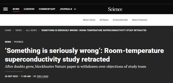 “这是人类首次实现室温超导!”然而,这个具有里程碑意义的重磅研究在9月26日被Nature撤稿。对这篇文章长期以来的质疑终于暂时落下了帷幕。