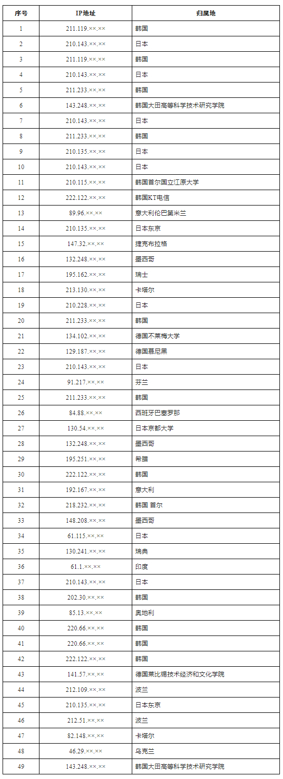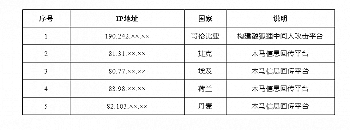 技术分析与溯源调查中,技术团队发现了一批TAO在网络入侵西北工业大学的行动中托管所用相关武器装备的服务器IP地址,举例如下: