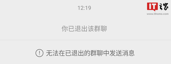 点击进入后可查看并查找聊天记录,但无法发送消息,输入框变为了“无法在已退出的群聊中发送消息”警告。