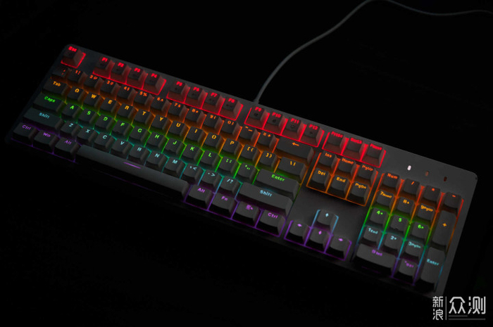▲插电开机,为什么FE104分为了幻彩版和RGB版呢?答案就在这里了,幻彩版键盘的六排,分别为红、橙、黄、绿、蓝、紫六色灯光,灯光颜色不可变。对于有RGB就能提升电脑性能的人来说,其实也问题不大。