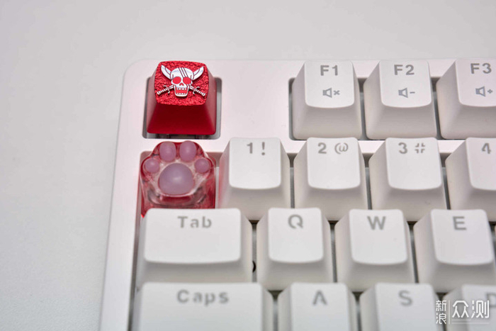 ▲为了发扬DIY的精神,我翻出了收藏已久的zomoplus的键帽。它家正版授权的高达、航海王联名金属材质键帽,以及原创的3D打印猫爪,造型都是很不错的。尤其是海贼王键帽,居然用上了CNC工艺,纤毫分明,细节满满。