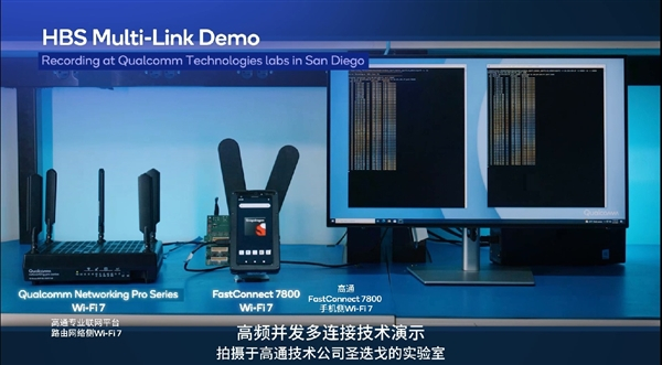 今年的IFA 2022大会和8月26日在成都举行的骁龙嘉年华上,高通展示了首个全球Wi-Fi 7 demo,展现了使用高通第三代专业联网平台和FastConnect 7800进行Wi-Fi 7连接的实地场景。