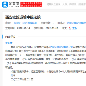 2018年11月28日,西部证券曾向陕西高院申请强制执行。2020年04月21日,因贾跃亭未按执行通知书指定的期间履行生效法律文书确定的给付义务,西部证券又申请对贾跃亭限制高消费。