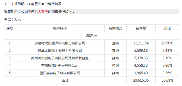 而宁德时代,正是华盛锂电的大客户。2021年,宁德时代为其第五大客户,销售收入占比达9.75%。