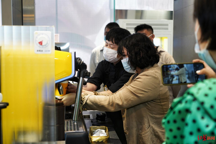 9月29日上午,在成都东大街晶融汇麦当劳旗舰餐厅内,20余名市民和粉丝一起品尝了麦咖啡新品奶铁,在活动现场,粉丝们还与咖啡师一起互动制作咖啡和拉花,全面了解这款全新咖啡品类“奶铁”。