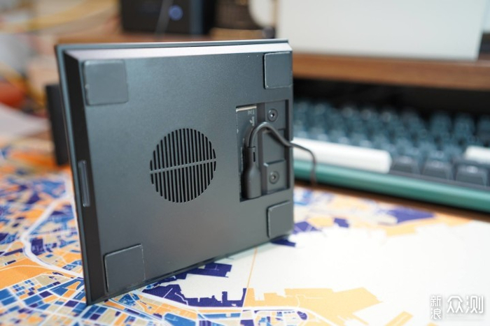底座背面是针对无线充电功能的散热口,电源线接口也隐藏在底部,保持了外部的美观。