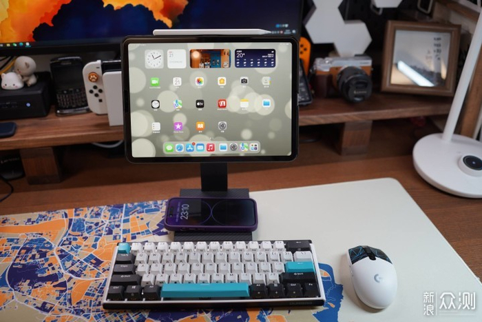 此时将iPad Pro吸附在支架上,搭配鼠标和键盘,无异于一台小型的MAC电脑,希望苹果能够尽快发布iPad OS 16的更新。