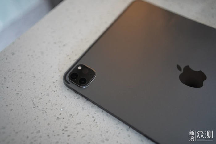 背面的摄像头模组很大,配备了1200万像素主摄和1000万像素超广角镜头,和之前iPad镜头相比拍照性能有巨大提升。