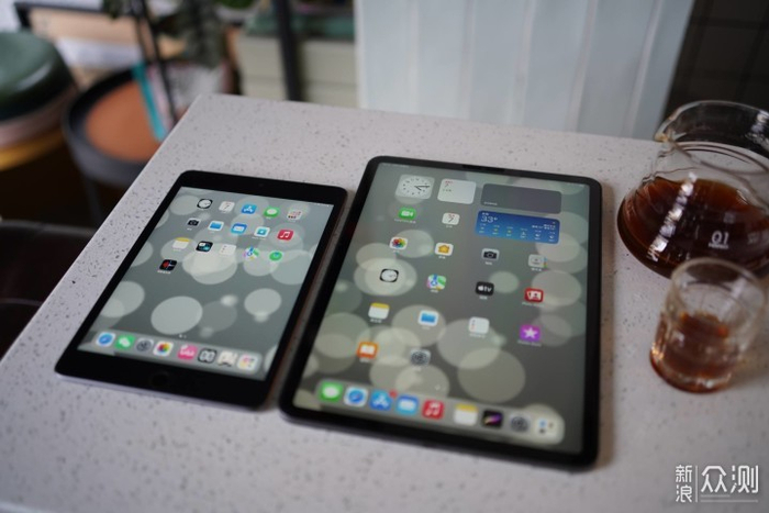 跟之前买的iPad mini5对比一下,mini果然有mini的小巧,Pro果然有Pro的气质。