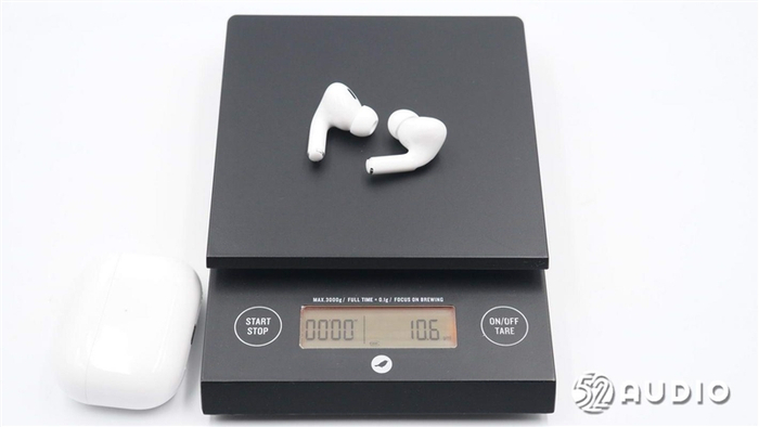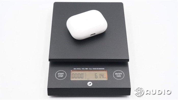 经我爱音频网实测,AirPods Pro 2 真无线降噪耳机的整机重量约为61.4 g 。